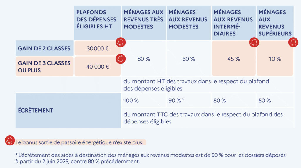 💶 Des aides renforcées pour les rénovations ambitieuses :