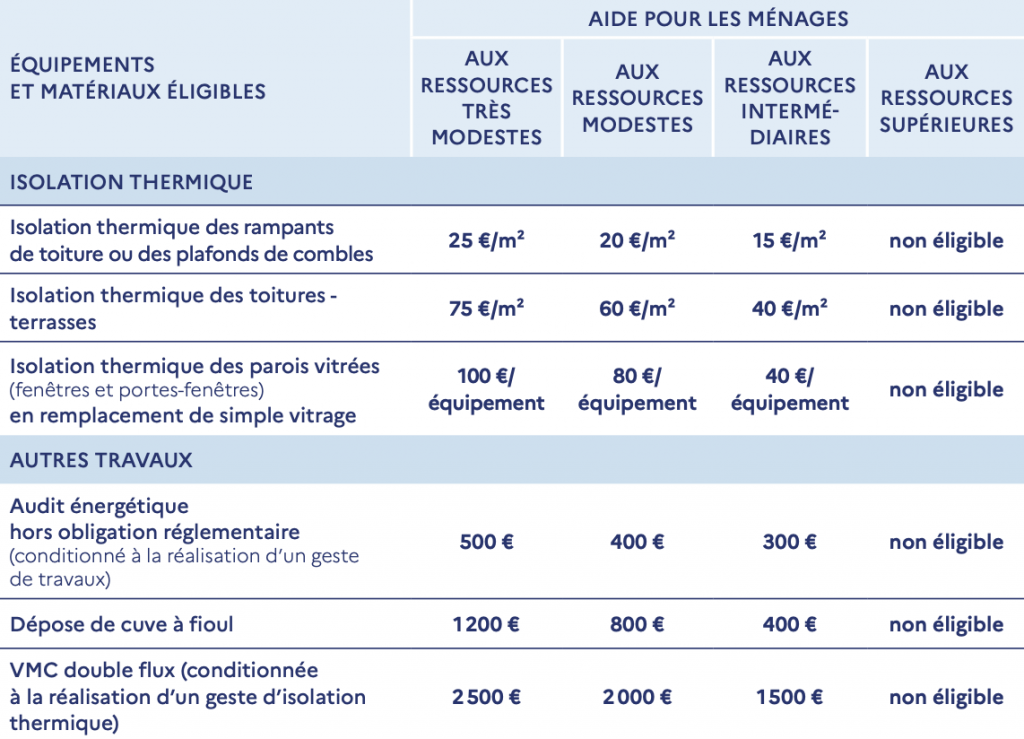 Ce dispositif constitue une aide complémentaire pour des travaux ciblés, mais ne permet pas de financer des rénovations lourdes.